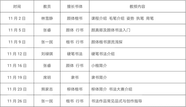 雅涵書院书法教员天团授课安排