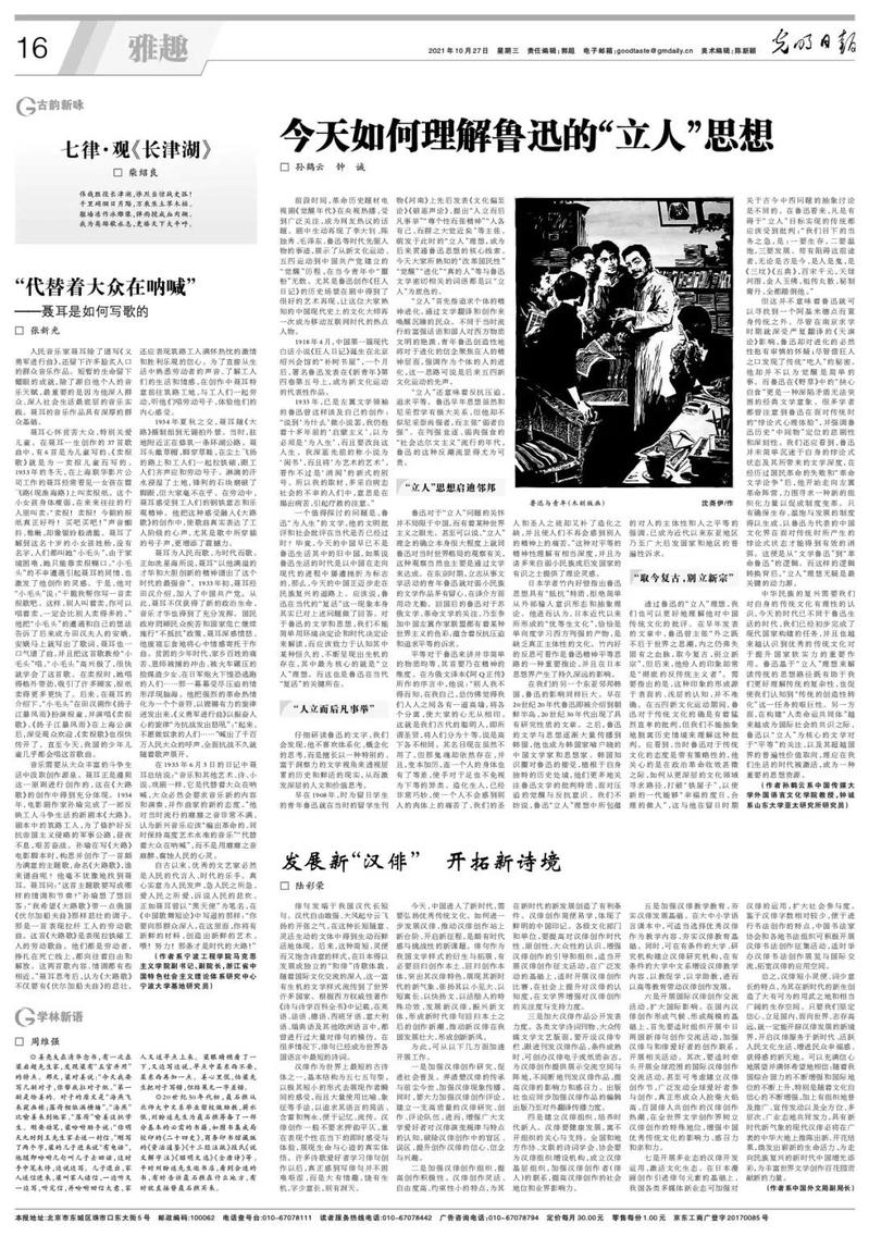 10月27日,中国传媒大学开云手机官方版在线入口教授孙鹤云和山东大学亚太研究所研究员钟诚在《光明日报》刊发文章《今天如何理解鲁迅的“立人”思想》。