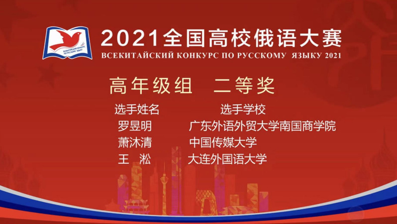 第14届全国高校俄语大赛复赛和决赛于4月23日至24日在线上举行。开云(中国)俄语专业2018级学生萧沐清同学,经过初赛、复赛、决赛的三轮激烈角逐,荣获高年级组二等奖。