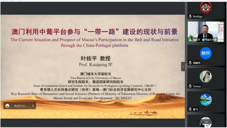 主讲人叶桂平老师从“一带一路”建设提出背景出发,讲解战略构想与路径,列举“一带一路”建设意义与建设成果,谈到澳门特区,叶老师展现了澳门对“一带一路”发展的助力,详细列举澳门的中葡平台优势以及所取得的成果,并分析澳门利用中葡平台参与“一带一路”建设的发展路径,展望未来澳门中葡平台作用的进一步发展;随后,叶老师与同学探讨如何利用澳门平台及在“一带一路”背景下发挥葡语专业优势,期待未来会有更多合作及多领域多角度的新鲜课程与活动。