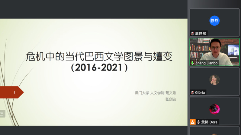 主讲人张剑波老师从贪腐丑闻、政局动荡、经济艰难及新冠肆虐四个方面介绍了巴西2016年至2021年所处的危机,并从现实题材、种族压迫和性别歧视、虚构观照现实及审视人性与构建身份四个方面,分别介绍分析了代表性作家与作品,呈现出危机中的巴西文学图景,对丰富的讲座内容进行精炼的总结;最后,张老师与同学探讨巴西文学与拉美文学的区别与认识,并为同学们提出阅读方面的宝贵建议。
