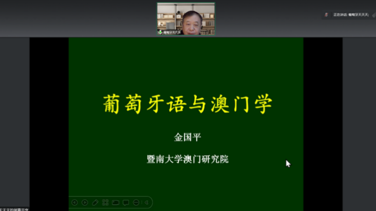 主讲人金国平老师以“Portugal”一词开始,说明了葡萄牙语在世界语言体系中的位置及关系,介绍了葡萄牙语在东方曾经的地位,同时,在介绍通用语词源当中也在翻译实践方面给同学们进行指导,具体介绍了三本葡汉字典及从史料中获得的启发与思考;金老师围绕澳门学主题展开,展现了历史学的魅力与严谨,并在随后的交流环节当中,与同学们围绕葡萄牙语在澳门发展情况等话题上进行探讨,为同学们解答困惑、提出宝贵建议。