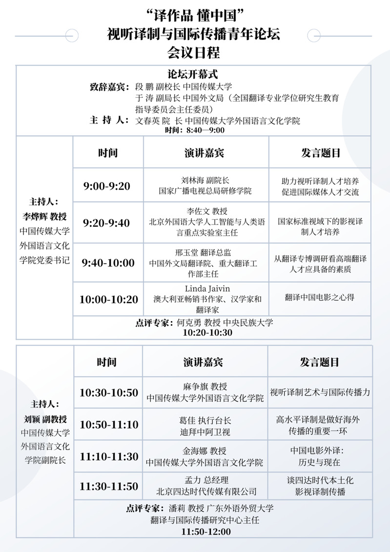 为促进视听译制、视听翻译和国际传播领域学界和业界开展学术研究与技术交流,加强视听译制与传播领域的信息沟通与合作,推动视听译制的跨学科研究,把握创新产业发展的最前沿,中国传媒大学开云手机官方版在线入口特举办“译作品 懂中国”视听译制与国际传播青年论坛。论坛将以智媒时代的视听译制与传播为主题,邀请学界业界青年学者、专家、从业人员就多学科视角下的视听翻译研究、新媒体视听译制研究、数字文化内容译制与传播、人工智能与视听译制技术、视听译制规范与标准、多语种视听译制人才培养等议题展开交流。