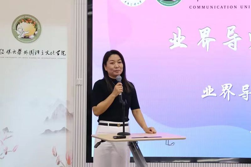 中央广播电视总台银发志愿者、译审林少文在发言中谈到,因喜爱广播和声音而与传媒行业结缘,并成为其中的一份子。国内有很多现象级的中文广播,与之相比,同等级的英文广播略有逊色。期望在中国传媒大学这座标杆学府中与老师和同学们共同学习交流,为发展英文广播事业尽自己的绵薄之力。