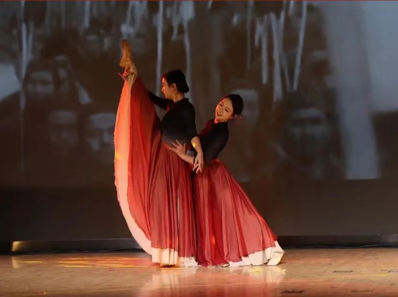 2022级匈牙利语的李子墨、黄雨茜、孙俪源、虞人华带来舞蹈《绒花》,以其真挚深情的朗诵和轻盈灵动的舞姿,展现了青年人肩负起国家责任、时代使命的那份坚定,“青春放光华”,照亮寸寸国土、照亮前进的方向。