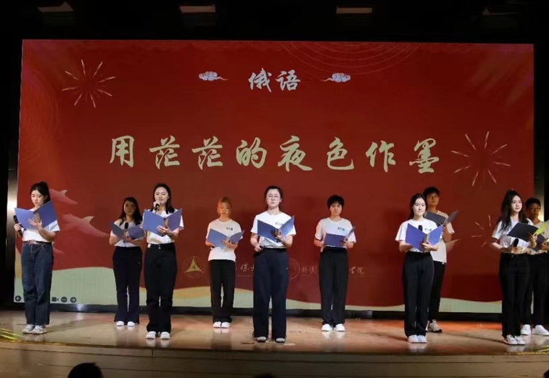 2023级斯瓦希里语、俄语、土耳其语、葡萄牙语专业的同学们带来多语种朗诵《青春中国》,诗歌从中国近代史的开端说起,讲到五四的爱国青年觉醒,再到今天新中国的强大,展现了他们的语言才华,表达了他们对祖国的热爱和为建设美好的中国贡献力量的决心。