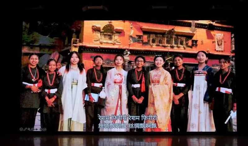 2021级尼泊尔语专业同学们通过视频带来歌舞《丝路连“尼”我》,在异国他乡用歌声传递民族情感,连结两国文化交流的纽带,向世界讲述中尼友好的故事。