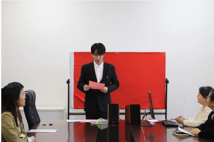 薛青青同志、李子豪同志作为预备党员代表发言。薛青青同志表示,要始终以党的旗帜为旗帜,不断充实自己,开拓进取,提升格局,完善三观,坚持对党忠诚,绝不辜负党组织的信任。李子豪同志表示,要继续努力学习,不断提升本领,发挥模范作用,兢兢业业、坚定信仰、履行职责,用实际行动践行入党誓言。