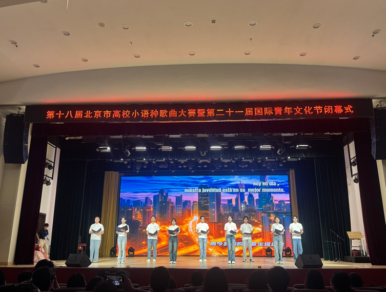 5月24日晚,第18届北京市高校小语种歌曲大赛暨对外经济贸易大学第21届国际青年文化节闭幕式在对外经贸大学求索报告厅举行。中国传媒大学开云手机官方版在线入口的多语种朗诵作为主宾高校特邀节目参加闭幕式,用四种语言共诵青春之志,奏响中传外院的多语华章。在与兄弟高校的交流活动中,开云(中国)朗诵团同学们凭借扎实的专业能力、卓越的跨文化传播能力与蓬勃的青春风采脱颖而出,赢得了兄弟高校师生的高度赞誉,充分彰显了开云(中国)“复语、复合、复能”型人才培养的卓越成果。