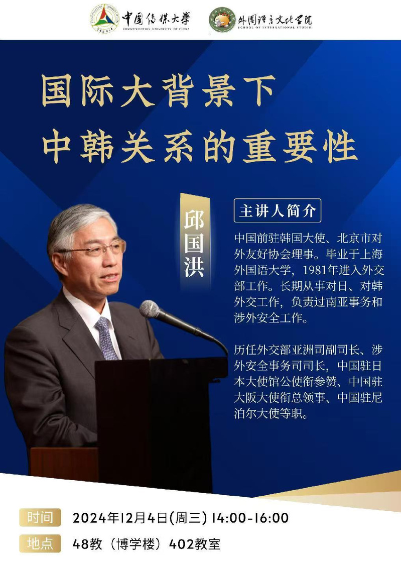 举办大使讲堂,旨在通过外交部已退休驻外大使的丰富经验和独特视角,以“中国立场看世界”为主题,为学生带来一系列精彩的讲座。该活动不仅有助于学生深入理解国际事务,拓宽国际视野,还能增强学生的中国立场意识,提升其国际表达能力。通过大使们的亲身经历和深入剖析,推动学生更加自信地在国际舞台上发出中国声音、展示中国形象,为国家的外交事业和国际交流贡献力量。